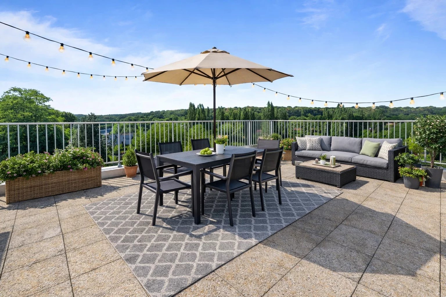 Traversant et baigné de lumière grâce à sa triple exposition, cet appartement offre quatre belles chambres réparties autour d’une vaste entrée avec rangements. Un escalier privatif mène à un toit-terrasse exceptionnel de 153 m², sans vis-à-vis, exposé plein sud, avec une vue dégagée sur la verdure ainsi que sur Vaucresson et Marnes-la-Coquette.